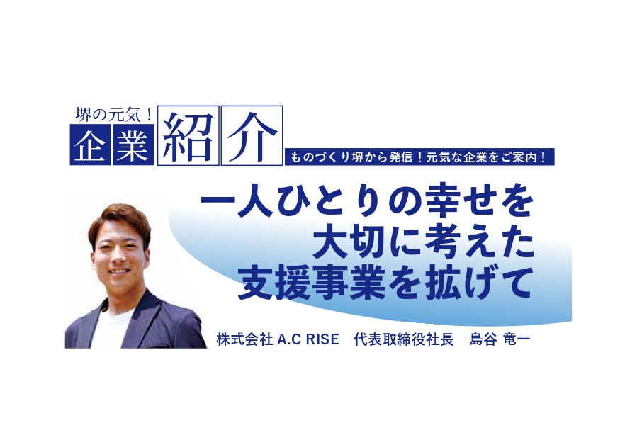 公益財団法人堺市産業振興センターによる地元企業紹介インタビューを受け、株式会社A.C RISE代表取締役社長 島谷が対応いたしました。